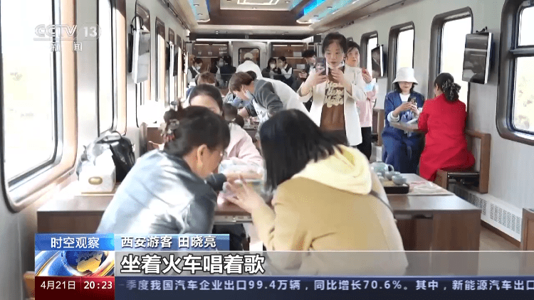 随着旅游市场的热度持续升温,距离五一假期还有不到两周,旅游需求就已经开始提前释放。最近的每个周末,都有从西安火车站开出的旅游定制专列,列车趟趟爆满。在西安开往铜川的Y621次“赏花专列”上,500多名游客从上火车开始,就进入了“嗨玩模式”。唱歌、抓娃娃、品茶、喝咖啡、看演出……定制专列上齐备的娱乐设施和服务,给游客们带来了“沉浸式”体验。