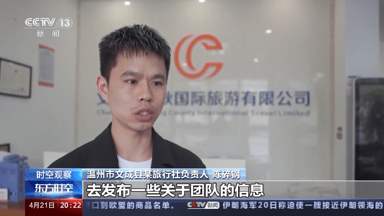 温州市文成县某旅行社负责人 陈碎钢:比如说会在朋友圈、微信群里面去发布一些关于团队的信息,需要多少名导游。