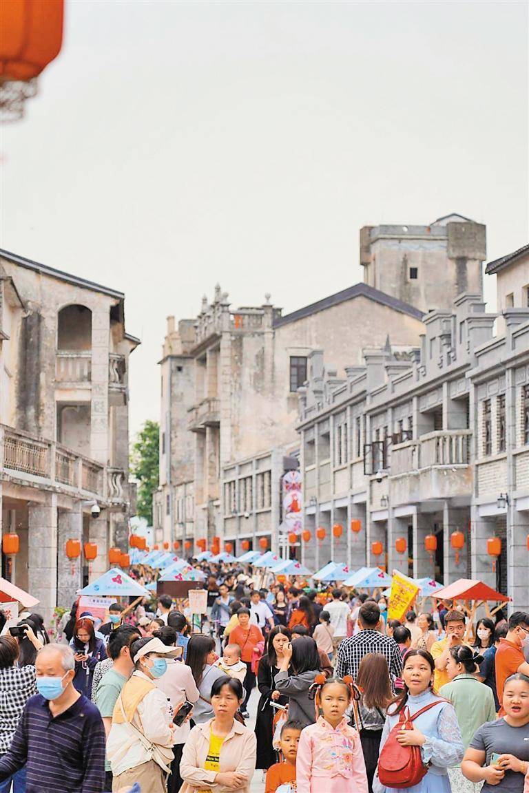 ▲4月8日,正值周末,观澜古墟观澜大街人流如织。 深圳晚报记者 余瑶 摄