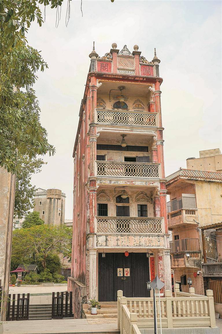 位于观澜古寺旁的四层洋楼“澜阁”是古墟最闪亮的明珠,也是游客必经之地。而名为“公益酒家”的澜阁有着通体红色的建筑外墙,每层都有罗马柱栏杆、西式凹阳台、被称作“红楼”。游客们喜欢围坐在古榕树旁,与焕发新生的“红楼”合影。
