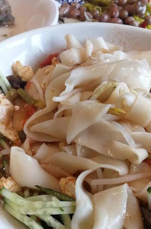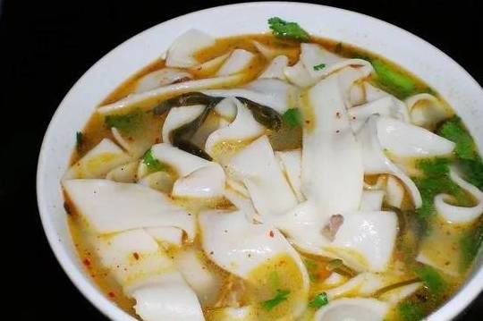 捞烩面的重要吃法就是配上大盘鸡。这种捞烩面直接是水煮面片,配上大盘鸡,在河南很流行。是夏天夜市上的宠儿。
