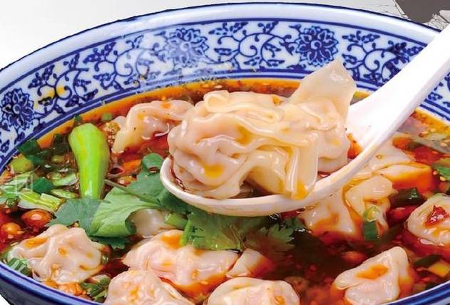 抄手是四川以及重庆的地方特色小吃,属川菜系;其汤汁微辣、抄手皮薄鲜美,吸引不少吃货前来品尝;以方面皮包肉馅,煮熟后加上芝麻红油和其他调料便可食用;滋味咸鲜、微辣,甚是美味。
