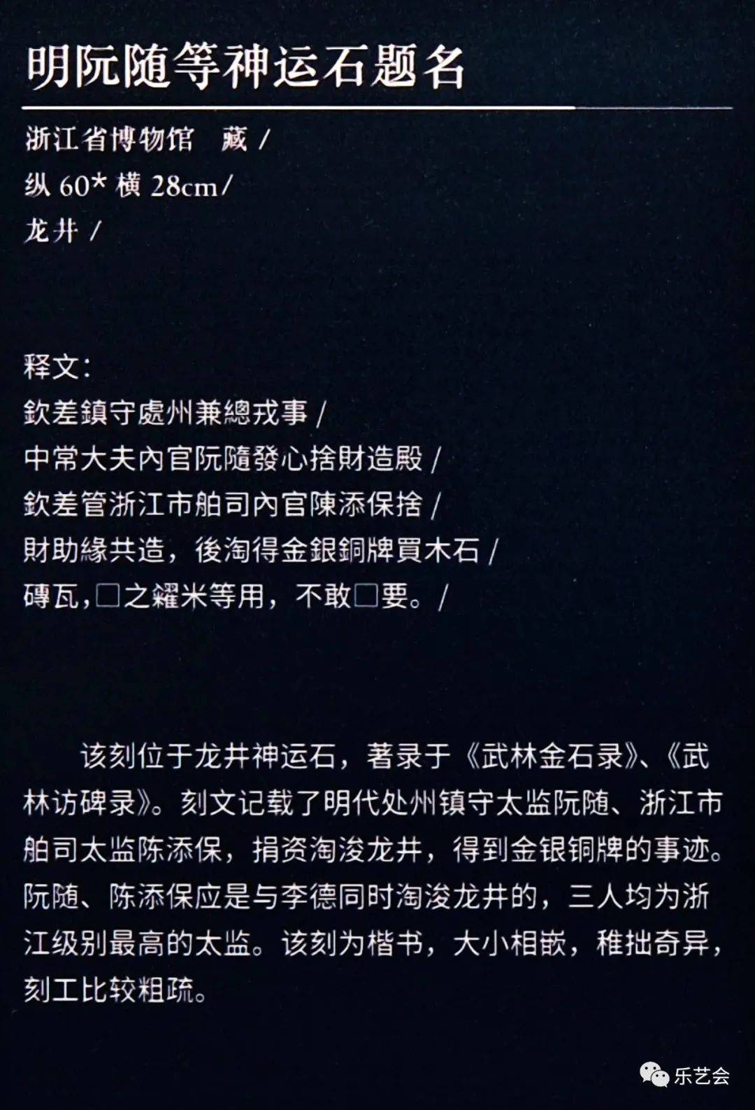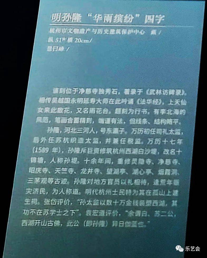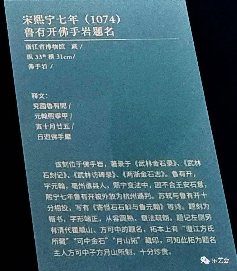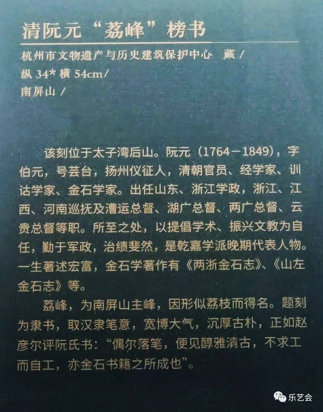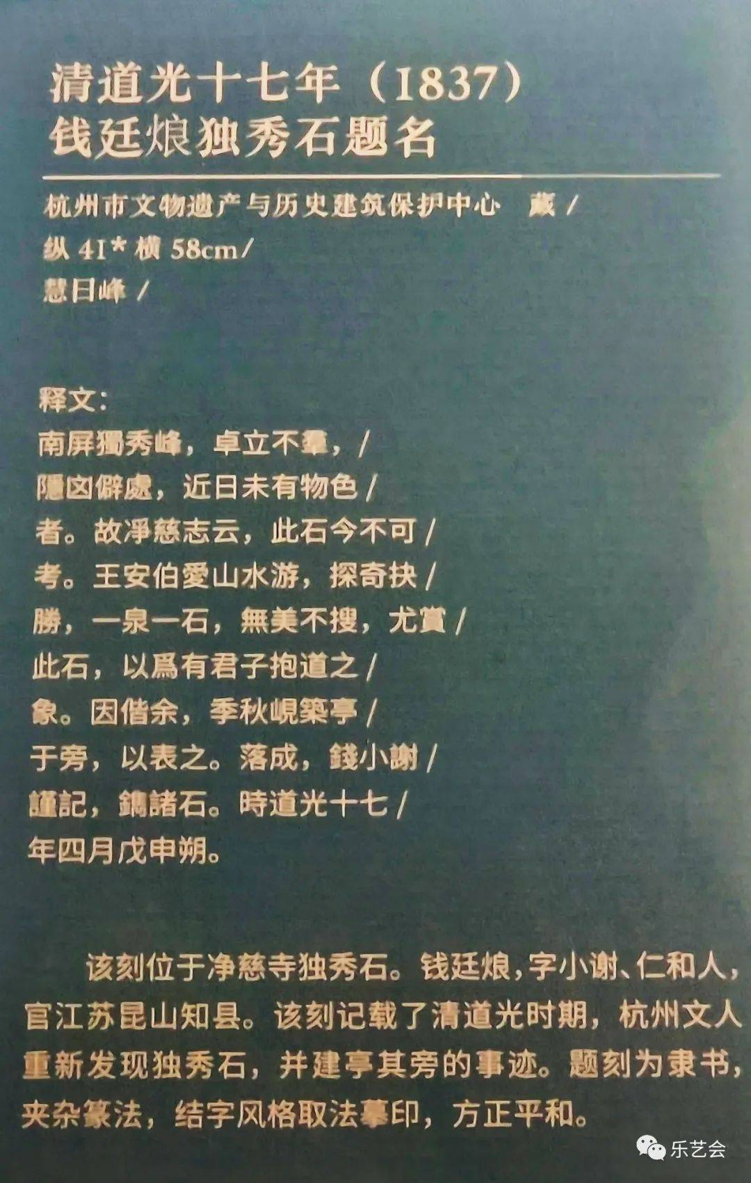 本单元展品中,宋康定元年(1040)司马池司马光南屏山题名、宋庆历二年(1042)苏舜钦等南屏山题名、宋皇祐三年(1051)浦延熙李乔南屏山题名、清乾隆帝乙酉年(1765)小有天园诗、清阮元“荔峰”榜书等数十处题刻,大部分为首次展出。吴越宝大元年(924)钱镠开慈云岭路记、吴越文穆王钱元瓘神道碑、明万历三十年(1602)孙隆烟霞洞题诗、明万历三十七年(1609)董其昌书永明塔碑等题刻的原石已毁,为珍贵的存世孤本。