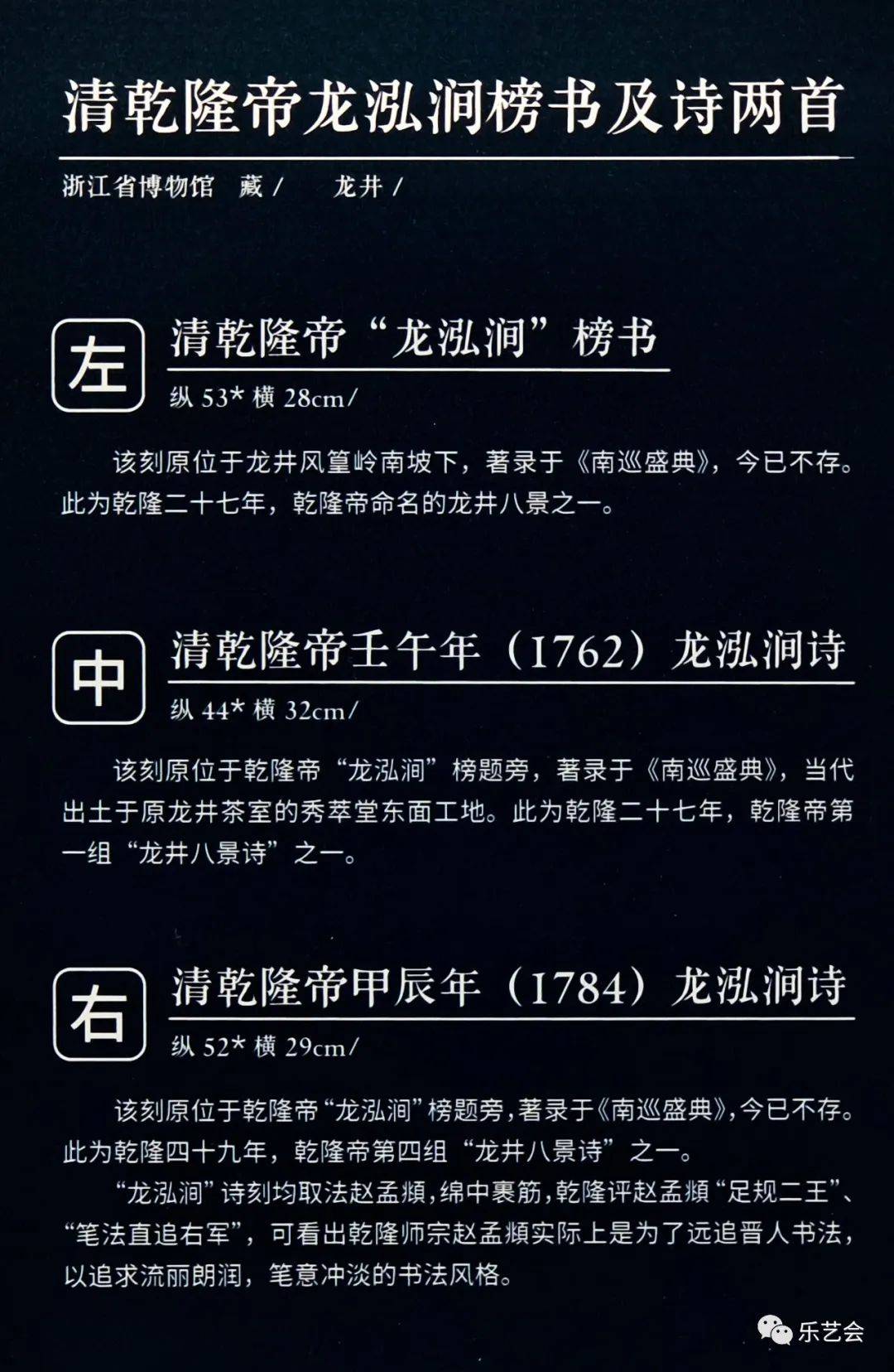 最早的唐代题刻主要集中在天竺寺、定山风水洞等地,五代吴越题刻主要以造像记为主,宋代题刻主要集中在飞来峰、南屏山、烟霞岭等地,元代的题刻多为造像记,明代题刻则以大字榜书为主,清代时更由康熙、乾隆两帝题刻西湖十景、龙井八景等景观,最终奠定了后世杭州西湖文化景观的格局。