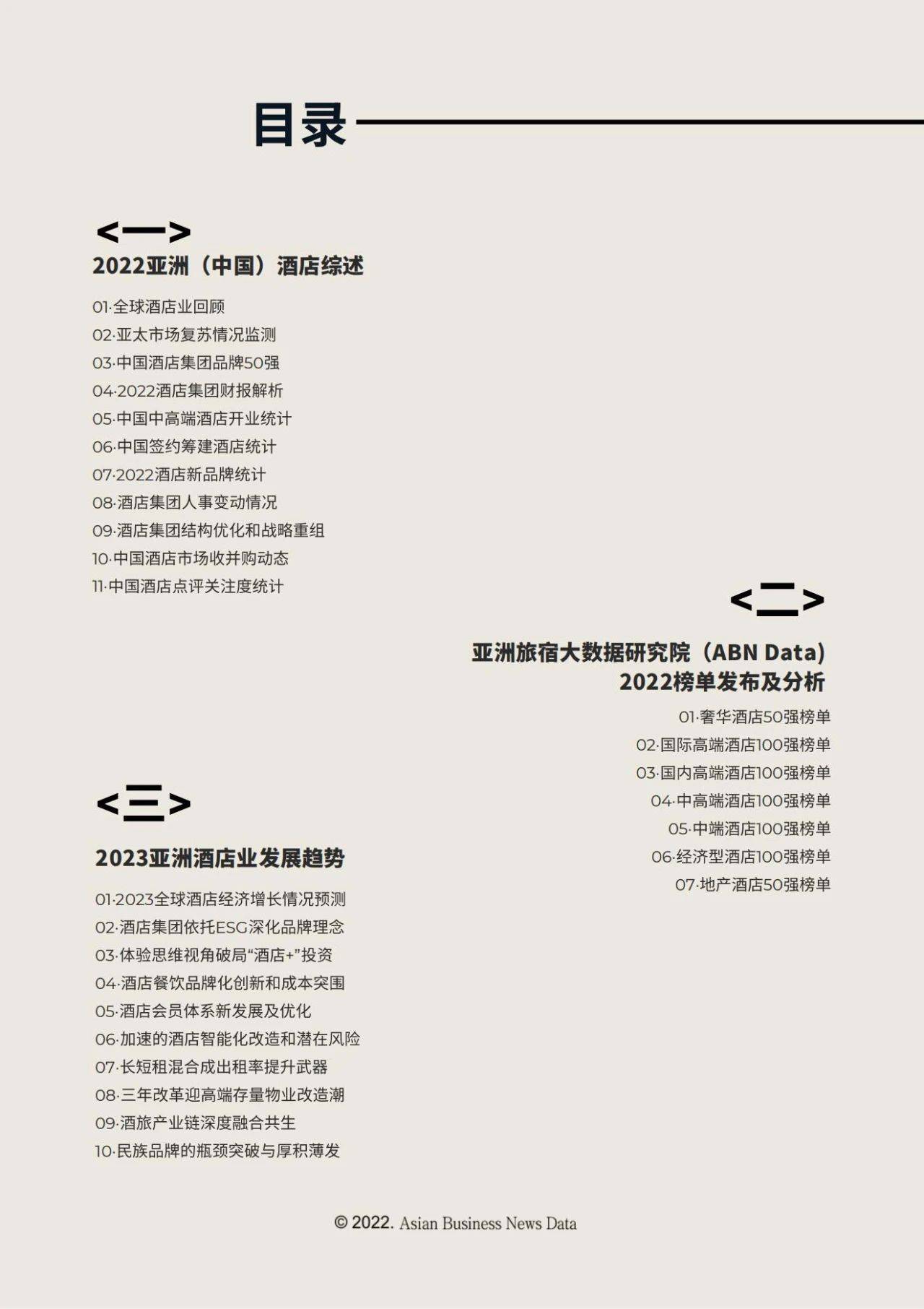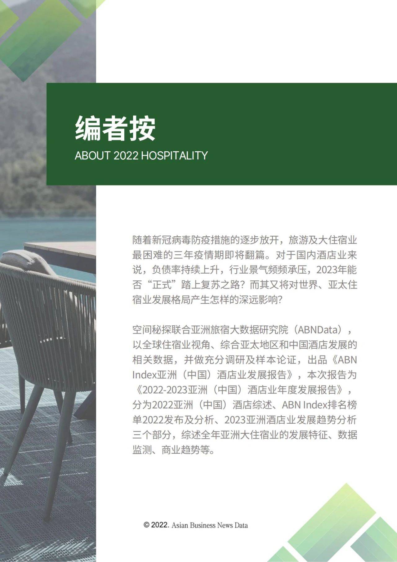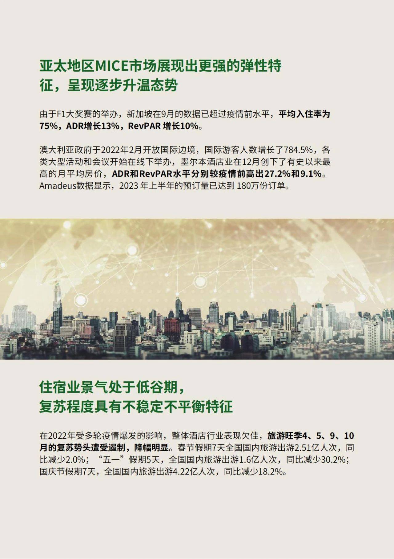 摘要:随着新冠病毒防疫措施的逐步放开,旅游及大住宿业最困难的三年疫情期即将翻篇。对于国内酒店业来说,负债率持续上升,行业景气频频承压,2023年能否“正式”踏上复苏之路?而其又将对世界、亚太住宿业发展格局产生怎样的深远影响?