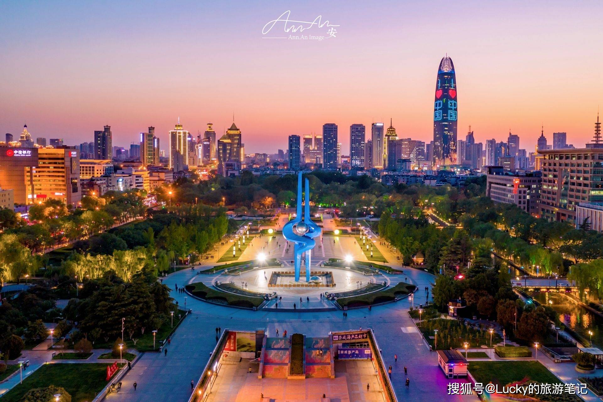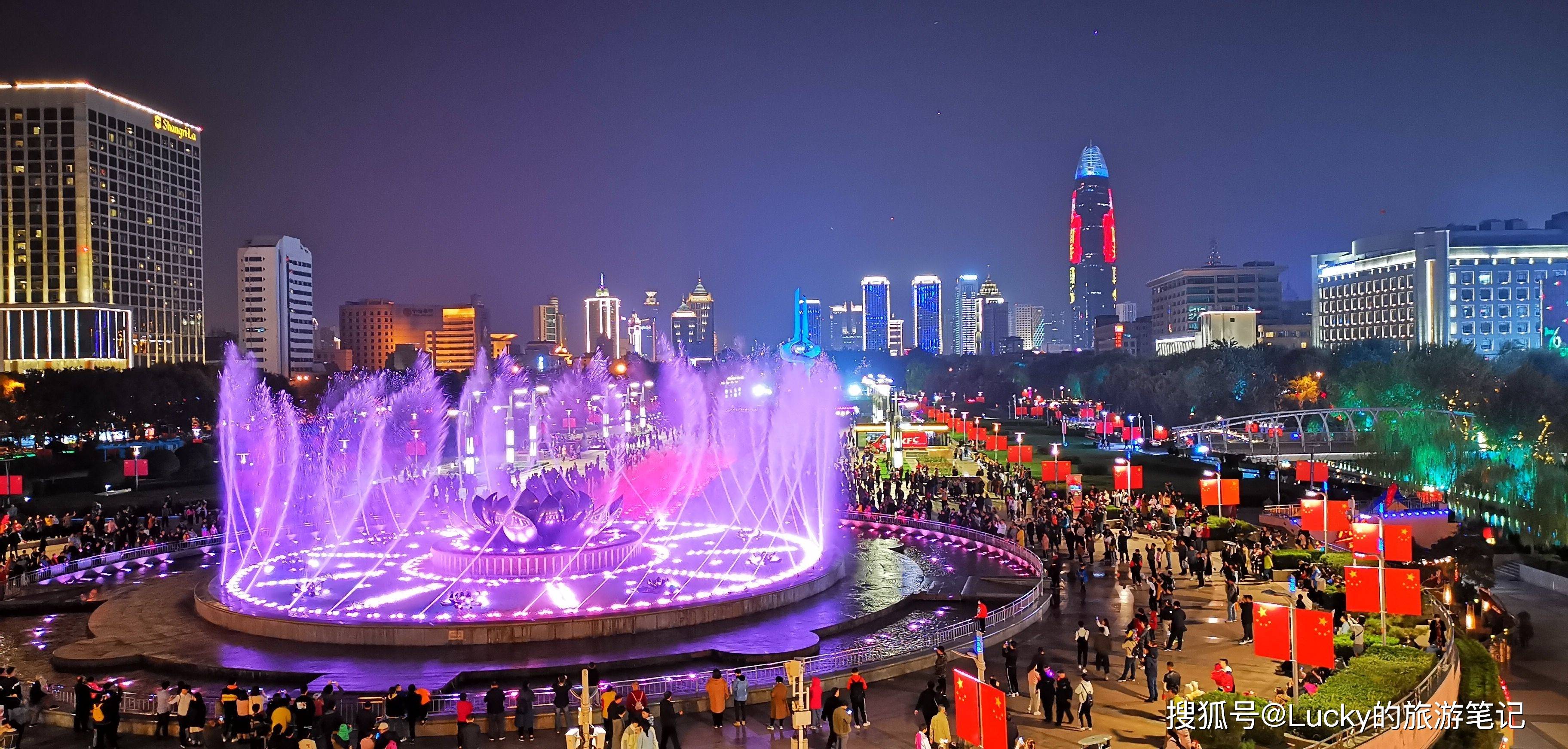 泉城广场位于济南市中心,是济南的城市中心广场,这里汇集了济南市内的各个标志性建筑和景点,如济南市政府大楼、济南千佛山大佛、泉城广场音乐喷泉等,是济南市最繁华的商业、文化和娱乐中心。