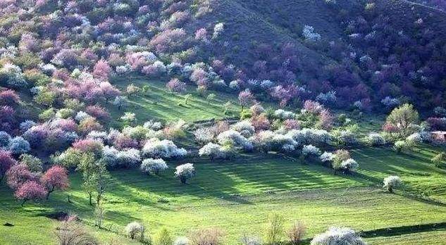春季北疆赏花,按时间顺序:杏花、桃花、野芍药花、丁香花、郁金香、野郁金香、顶冰花、野百合、金盏花、薰衣草……