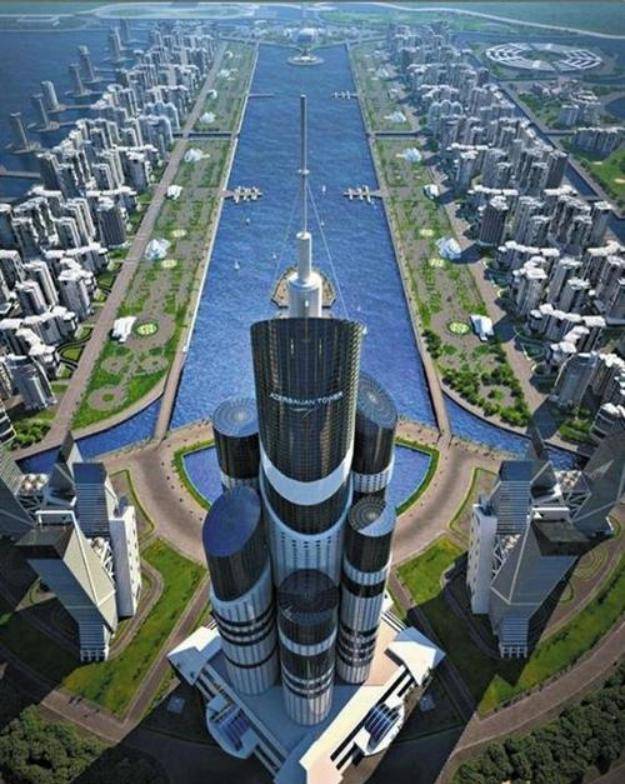 对于这座城市的规模,规划师早已经设计好了,预计将可容纳100万居民,整个城市布局会囊括150所学校、50家医院,还有公园、购物中心、文化中心,大学学院以及F1赛车场等满足人们日常生活需求的公共服务设施。而且,在城市中心还将建造一座高度超1千米的阿塞拜疆塔,毫无疑问的全球第一高,作为整个人工岛最醒目的城市地标。