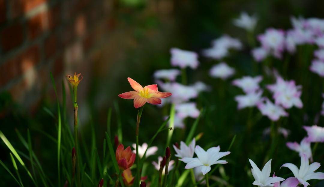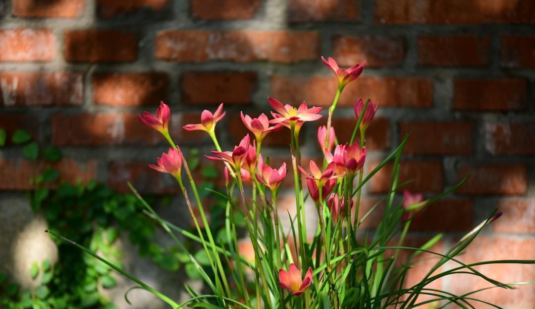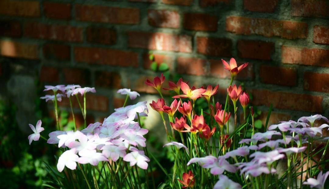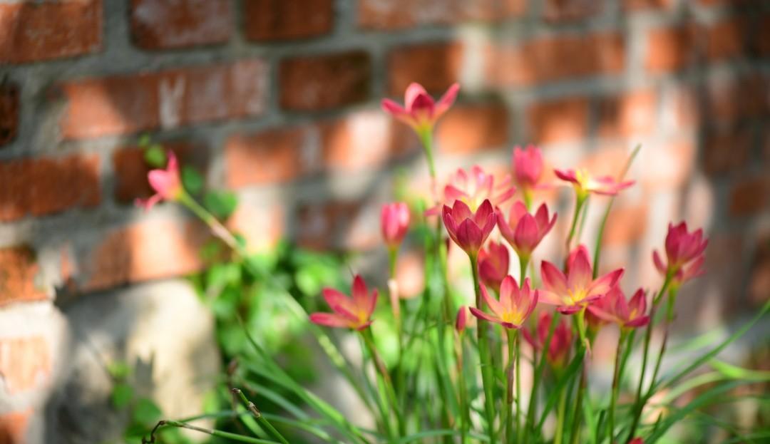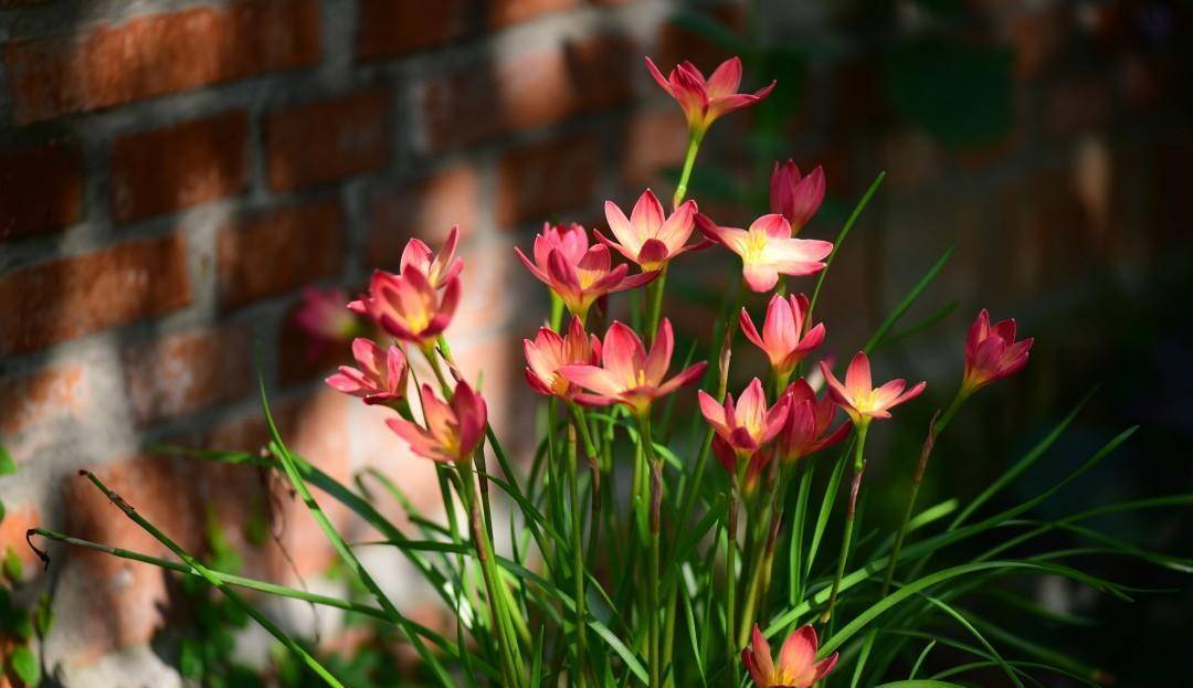 搭配红砖墙,在阳光的照耀下,火焰一样闪耀的光芒,美得无辜清雅又惊心动魄。