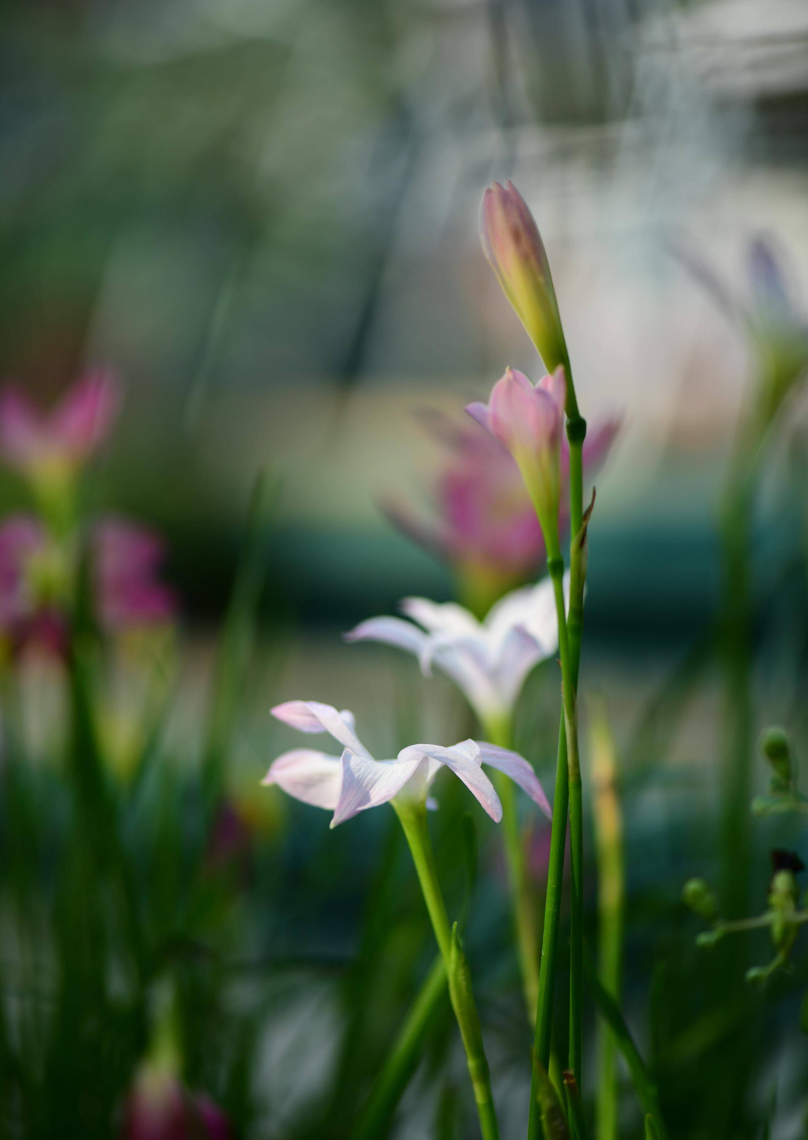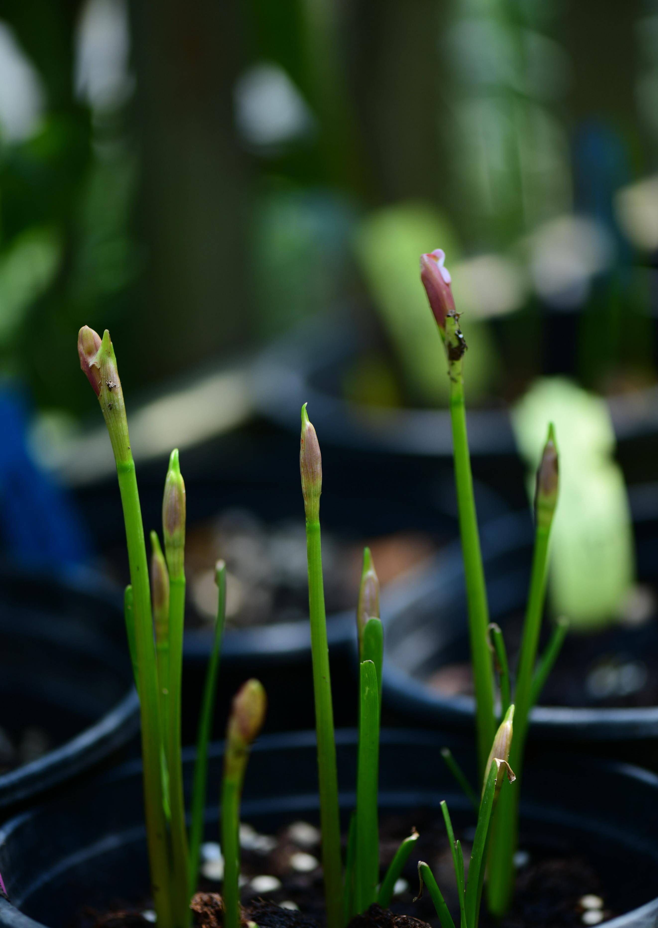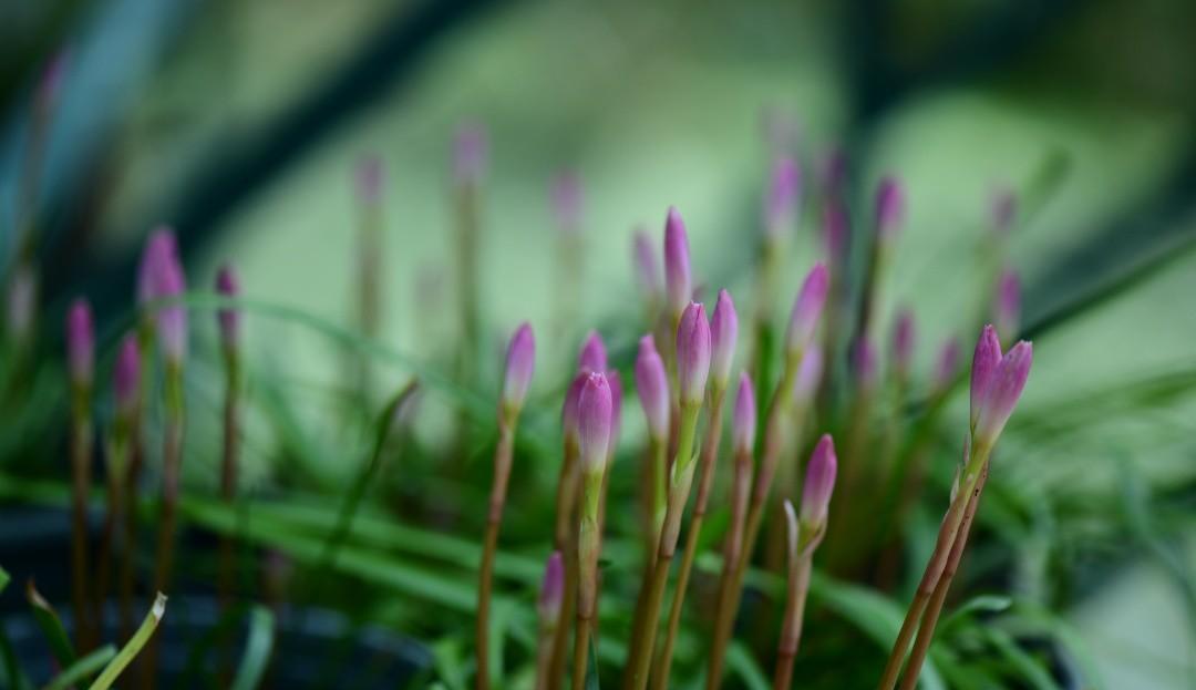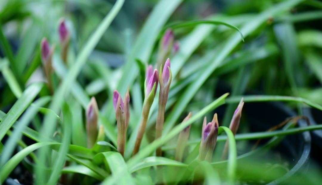 风雨兰大概也是相同的体会,萌动的球茎里的花芽们纷纷被唤醒,迫不及待地串了出来。 第二天就长高了很多,胖丽丽的粉色花骨朵像是一个个小火柴头,极可爱。