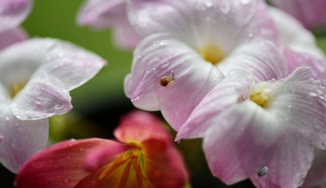 雨天会有蜗牛,吃花吃叶子~ 手工捕捉就可以。