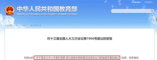 这一提议让学生很激动,相关教育部门也进行了正式回应,针对“春秋假”的研究探讨表示,各地学校可以根据实际情况安排,增设大中小学的春秋假。