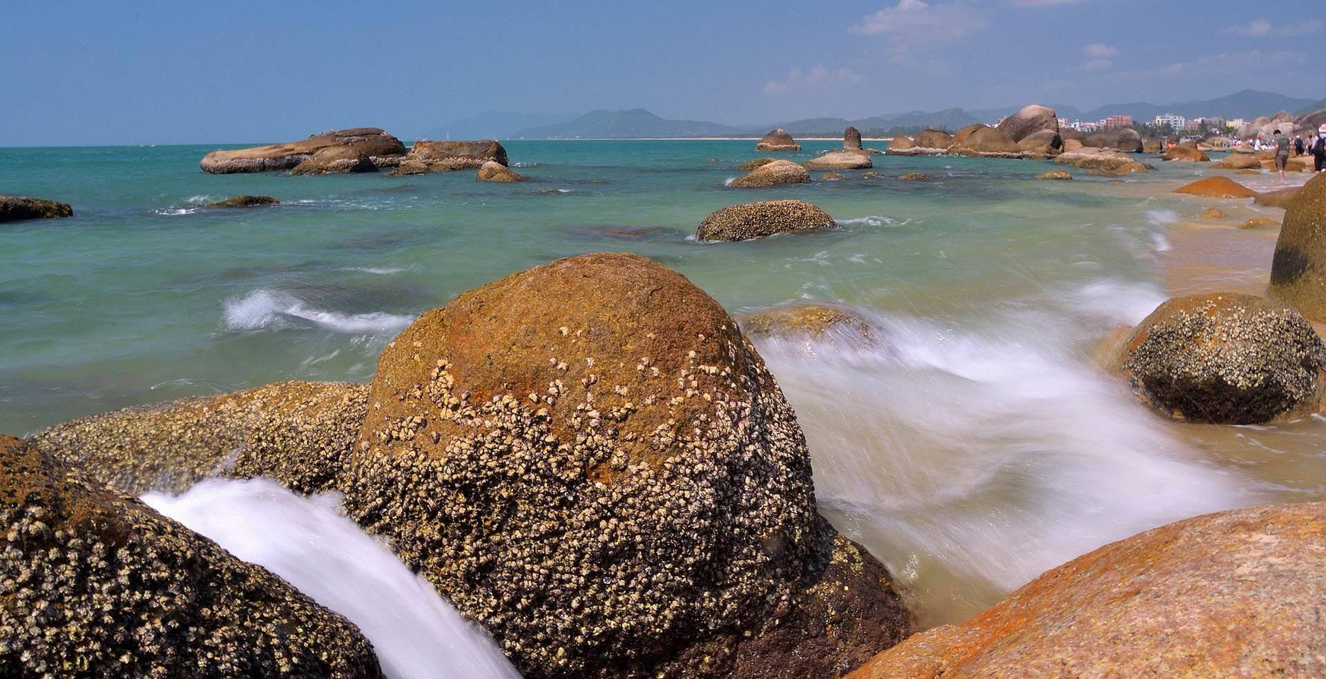 三、游海南,大小洞天风景区也是必看的地方。大小洞天风景区,位于三亚市区的西部,有四十多公里的路程,秀丽的海景、山景和石景,是它的特色,号称琼崖第一山水名胜。进入景区大门,映入眼帘的,是几棵高大、细长的椰子树,挺立在那儿,像是在欢迎远方的客人。风景区内景点众多,目不暇接,有“小洞天”、“钓台”、“海山奇观”和“仙人足”等多处摩崖石刻。