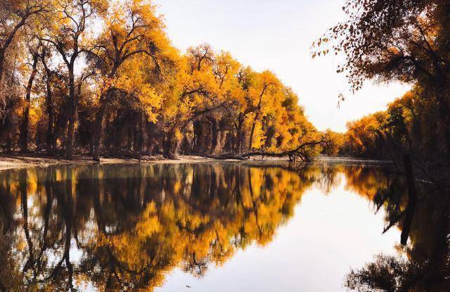在南疆,沙雅县和轮台县在塔里木河沿线,可以拍到超美的水生胡杨,胡杨倒影在水中,金色蓝色间拍出来的都是油画色彩