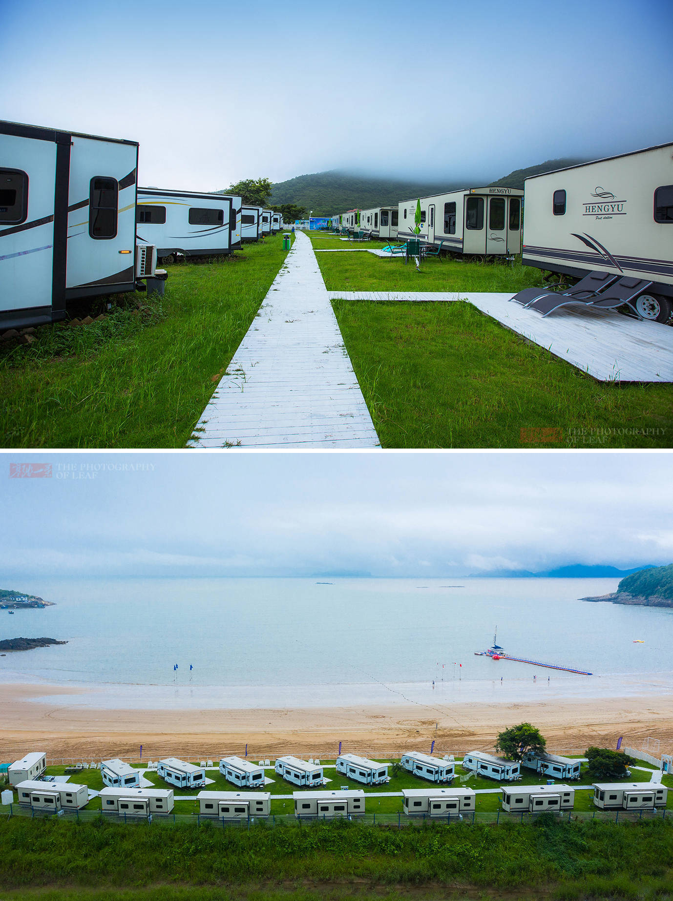 在沙滩东边有一个房车露营区域。四周围绕着苍翠的绿色,眼前是金色的沙滩和浩瀚的大海,闹中取静,让你全身心的感受大海的魅力所在。