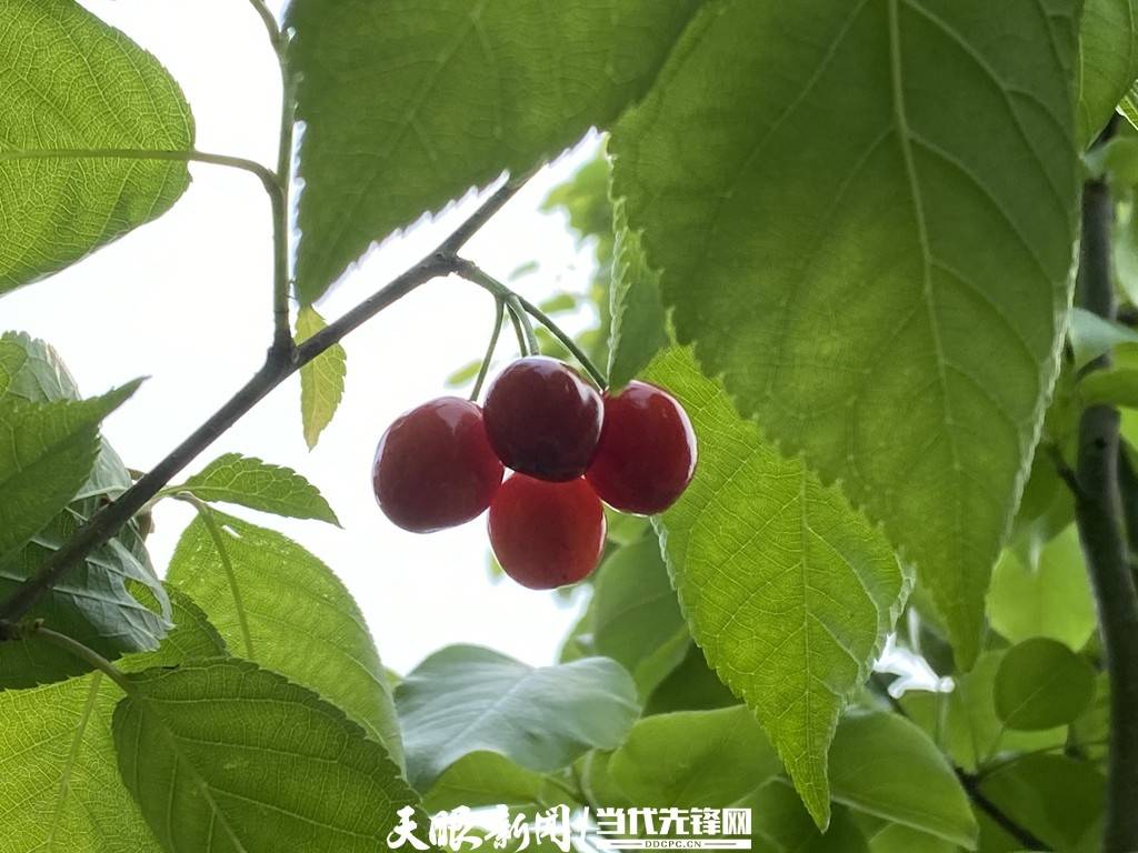 遥看枝头玛瑙红,近却樱桃压枝弓。连日来,剑河县岑松镇巫门村200多亩的玛瑙樱桃相继成熟,一颗颗红润饱满、晶莹剔透的樱桃挂满枝头,红果绿叶交相辉映,引来不少游客前来采摘、游玩。