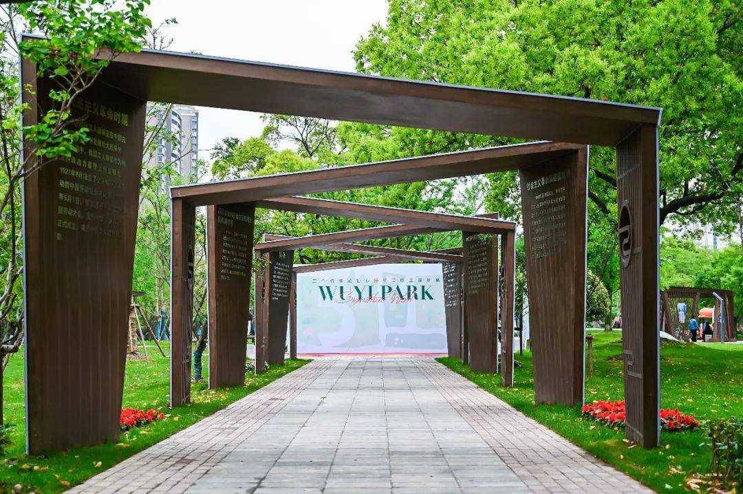 奉贤“五一”公园位于奉贤新城核心区域,北靠百通路,南依百秀路,东临百富路,西到望园南路,总占地约47亩。公园总体设计以劳动奖杯为原型,象征工会Logo的环形步道在杯身上方组成会徽图案,与杯柱构成“天”“人”合一的文字形态。