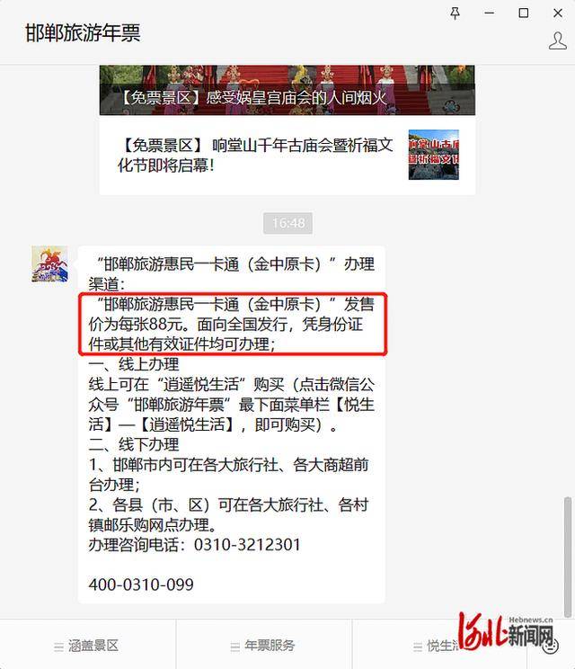 记者致电“邯郸旅游惠民一卡通”投诉电话进行咨询。据客服人员介绍,该卡面向全国发行,凭身份证件或其他有效证件均可办理,不限户籍,游客办卡后可持卡免费畅游该卡所涵盖景区,但黄粱梦吕仙祠除外。“游客之前到黄粱梦吕仙祠游玩可持卡换票入内,但现在没有相关证明的外地游客确实不能享受免票政策。”该客服说。