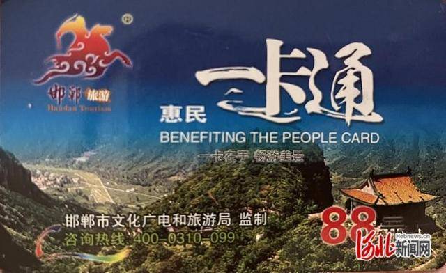 记者联系沙先生得知,去年年初,沙先生无意间看到“邯郸旅游惠民一卡通”的介绍,被“面向全国发行、一卡在手畅游无忧”的宣传语吸引,遂从旅行社购买了3张“邯郸旅游惠民一卡通”,以便日后带父母在邯郸游玩使用。