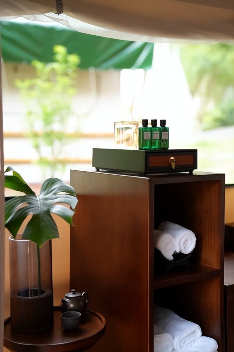 房间里的用品很多都是顶配,戴森吹风机,超级柔和的棉织品,再加上爱马仕四件套与帐篷搭配这种骚操作真的圈粉:让人女生惊喜的是这个空间内竟然配置了独立的梳妆台,可以在中间拉起梳妆镜,下层的置物隔也很方便。