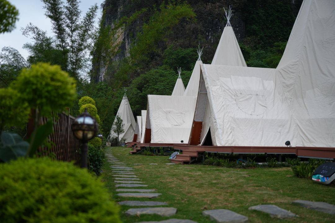 除了静谧美好的居住环境外,多种多样的休闲项目也在山水笙美星空下帐篷度假酒店等待每一个自由的灵魂。四季花果环绕下,全日制溶洞餐厅、东南亚BS酒吧贴心地满足了我对饮食的一切美好追求;静态生活区,独具匠心的设计艺术与自然完美融合,光是举目欣赏就让我进入了彻底恬适的悠然境界。