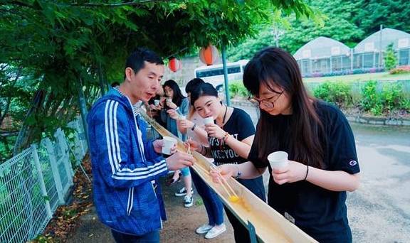 这种日本的“网红美食”就是“流水面”,顾名思义,“流水面”就是顺着流水留下来的面条,大家依次站在流水的长竹筒旁边,等着食物从自己面前经过时夹起来吃。