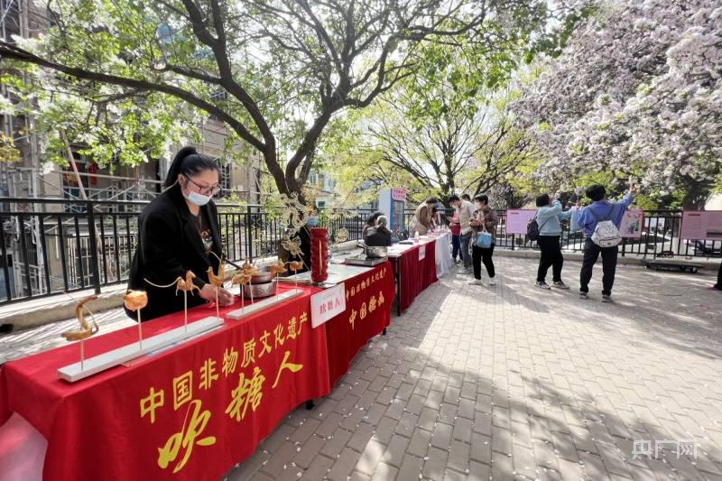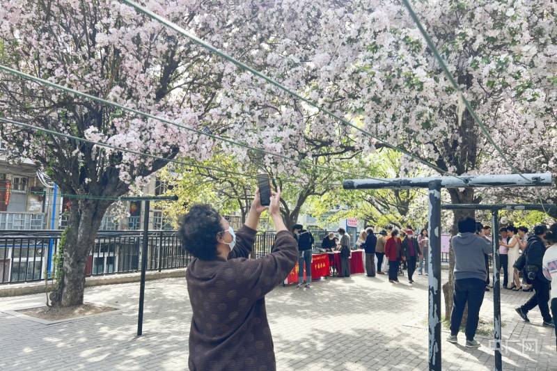 海棠花下,竹笛声声,身着旗袍、汉服的人们在花间留影;相声表演引来现场笑声阵阵;非遗传承人在石头上以花创作……市民们纷纷拿出手机记录下眼前美景。