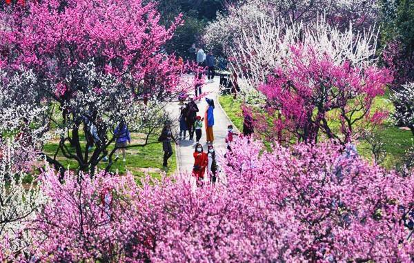 截止到4月初,武汉市的赏樱游仅东湖樱花园一家就有赏樱游客70万人,单日入园游客量最高达到了7万余人,共接待旅行团队约500批次,其中多为跨省旅行团、港澳旅行团。从这个数据上来说,相距不到300米距离的东湖梅园今年春初的赏梅客就要远远低于东湖樱花园了。