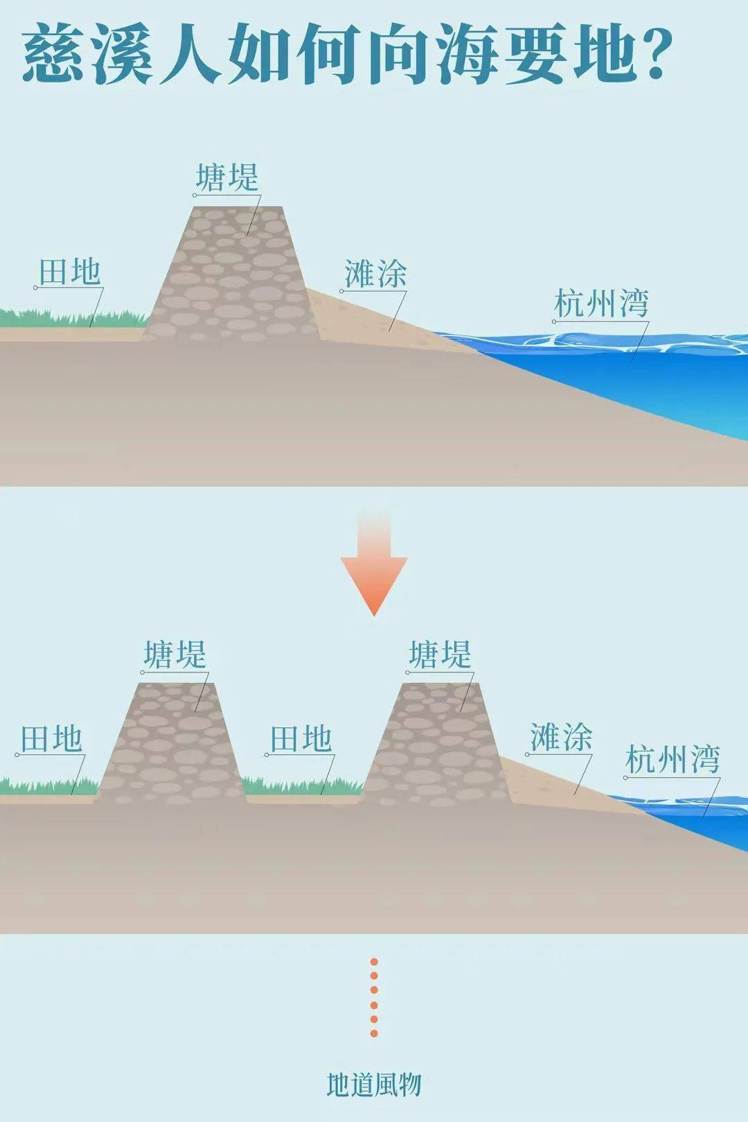 就像大城市从内而外可以分为“三环”“五环”,慈溪生长的年轮,是“三塘”“五塘”“八塘”。北半球的河流通常侵蚀右岸,然而在逆河道而流的钱塘江大潮的影响下,慈溪所在的右岸反而沉积了大量泥沙。