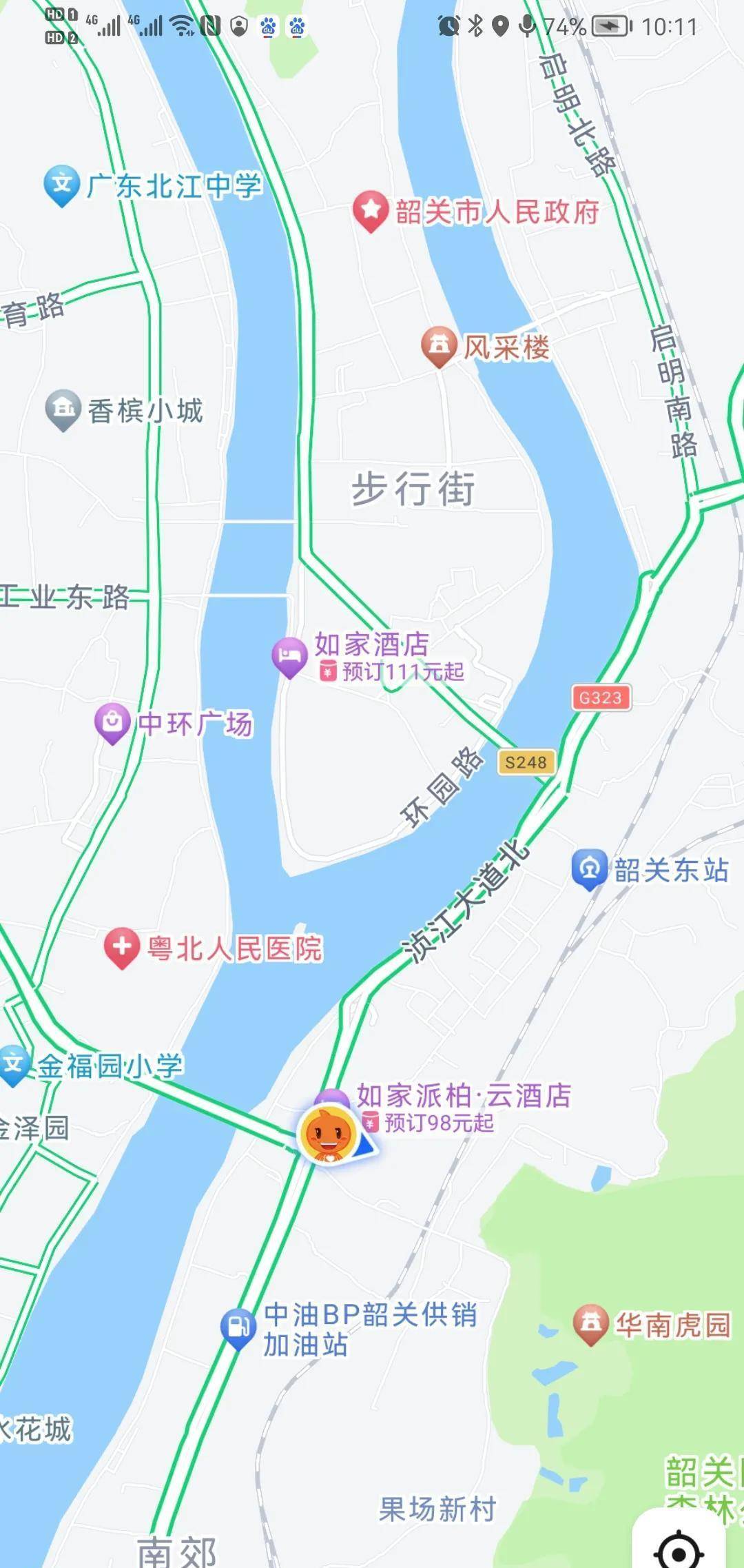 昨天住浈江岸边,今天住浈江与武江汇合后的北江边。韶关这个城市很美,山水相依,绿色葱葱,应该是一个宜居城市。