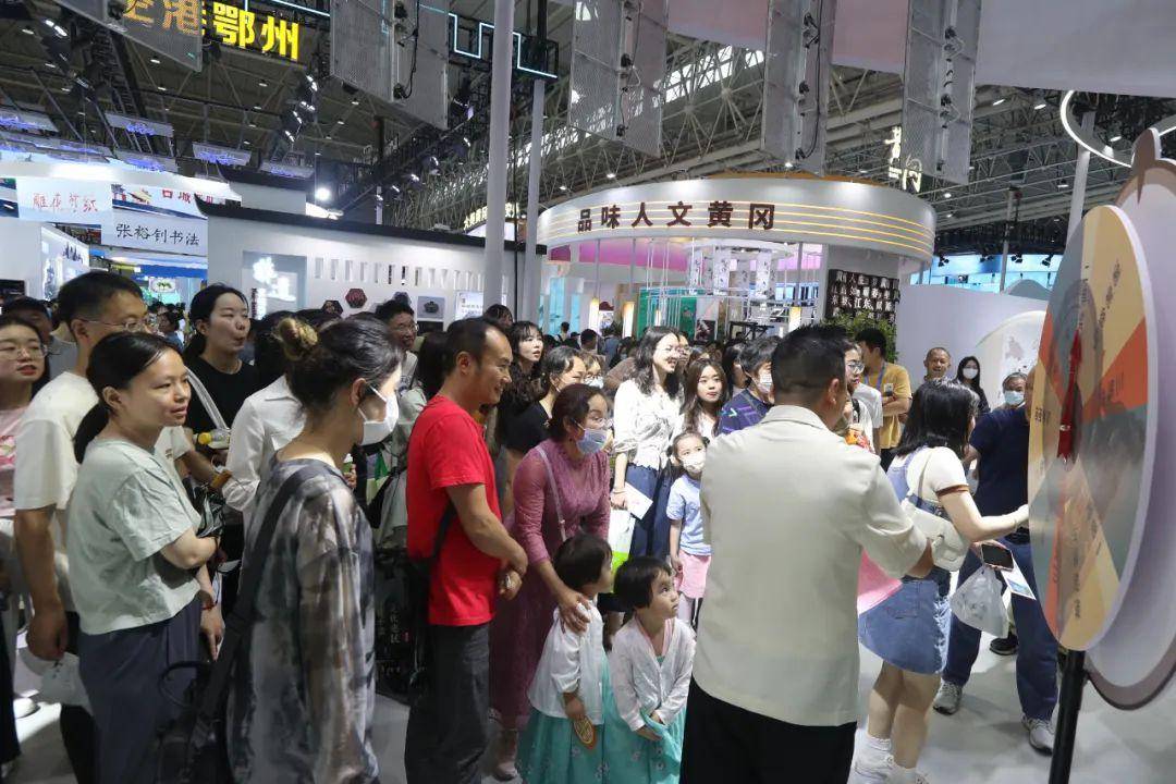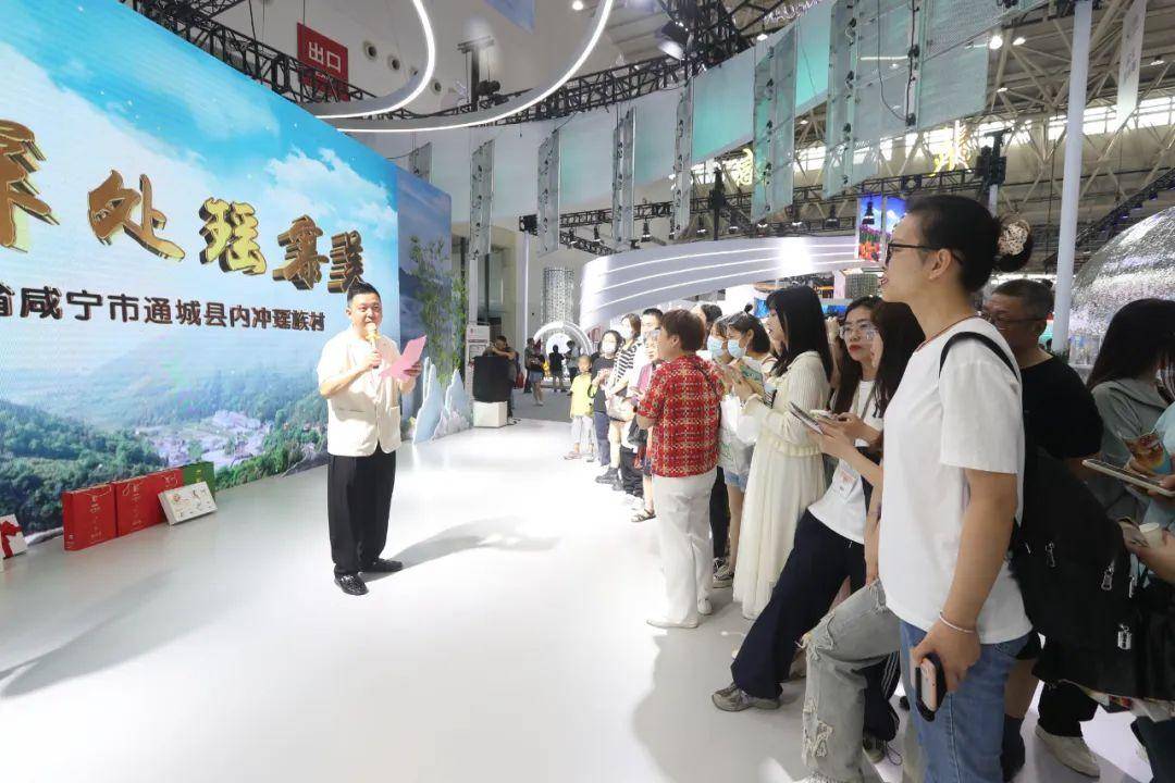 展区熙来攘往,不少人打卡拍照。琳琅满目的咸宁特色产品 ,青砖茶、一扬香花桂花精露、咏安桂花糕、黄鹤楼酒、竹盐+系列产品、九井峰茶叶、崇阳小麻花、野藕系列、咸安竹雕产品、马钱子中医药系列产品……让人眼花缭乱,不少游客拿出手机现场扫码付款购买。