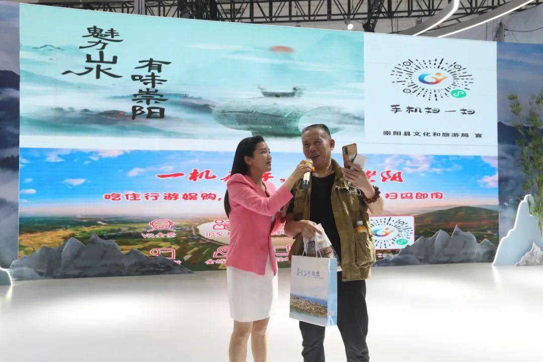 演艺互动区的LED屏通过视频全方位展示咸宁丰富文旅资源,崇阳提琴戏选段《相会》、舞蹈《栽禾鼓》、瑶族“高山流水”体验精彩不停,各县(市、区)专场旅游推介活动也将轮番上演。游客们踊跃回答问题,通过幸运大转盘领取咸宁文旅精美礼品。