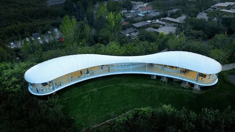 荣成樱花湖城市书房,坐落于威海荣成樱花湖畔。