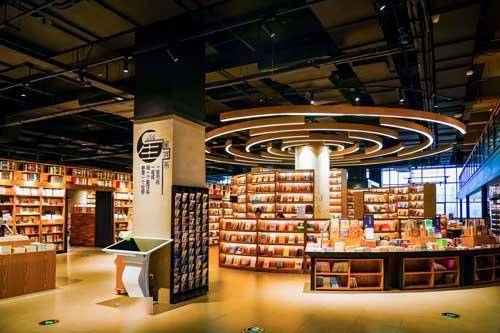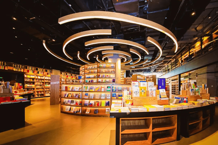整个书店从外观到书架陈列都运用了光影设计,让读者从进门的那一刻,就感受到书店处处书写着的诗意。走进书店,诗的芬芳和远方的梦想会从文字中飘溢出来,岁月的温馨也会在书香中慢慢沉淀。