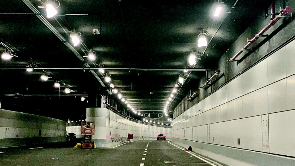不用急于把隧道的通行顺序全部搞懂 当天9时许,在港隆路出口处,采访车逆行方向驶入大连湾海底隧道,当时对向正有工人进行收尾施工。刚驶进隧道口时只有两排车道,隧道顶部较低,稍有压迫感,进入隧道后变为单向三排车道。首先经过去往港湾广场、人民路方向的出口,然后经过去往民主广场方向的出口。采访车靠边停下来,隧道内灯光通明,洞壁干净整洁,消防设施设置间隔较近。