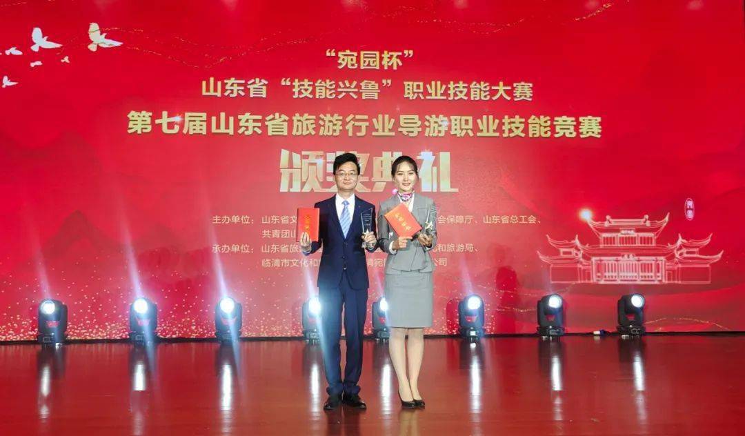 4月19日-4月21日, “宛园杯”第七届山东省旅游行业导游职业技能竞赛决赛暨颁奖典礼在聊城临清成功举办。烟台市文化和旅游局选派的两名选手在此次比赛中表现优异, 袁飞(左)决赛成绩位居第一、李丰韵(右)位居第八,分获一等奖和二等奖。烟台市文化和旅游局荣获“突出贡献单位”奖。截至目前,烟台有6名导游入选国家文旅部“金牌导游”培养项目,屡次在山东省导游大赛、全国导游大赛中取得优异成绩。