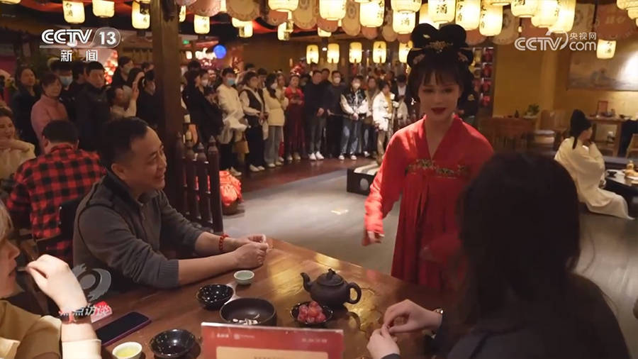 在这个开放的舞台上,唐诗宋词、历史传说、戏曲武术,各种传统文化都被创新演绎。许多来这里的观众,通过这种参与式体验,从以前很少接触这些传统文化艺术,到逐渐了解、产生兴趣,甚至爱上了它们。