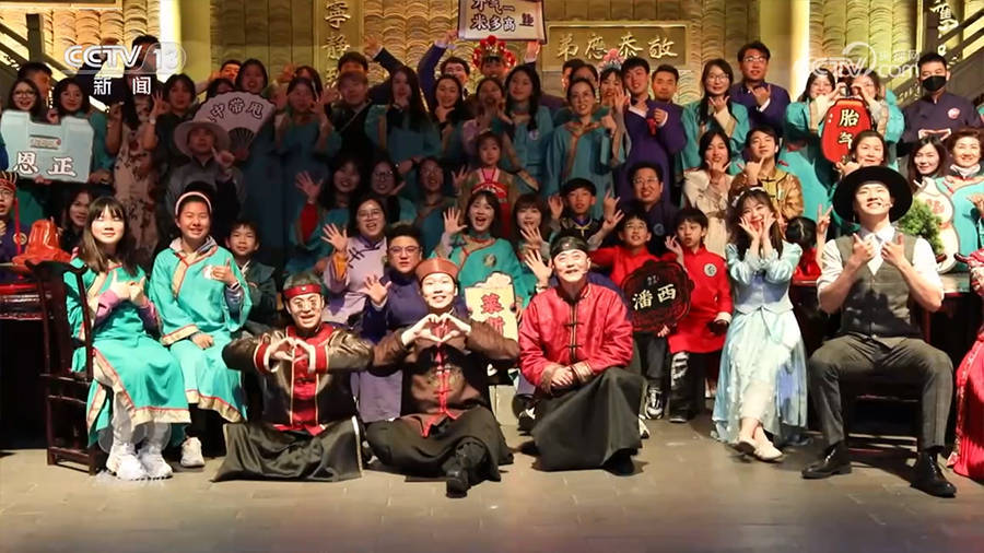 这些正在学写梅花篆字的观众,其实也正在演出,他们演的角色是剧中的八小姐请来给老太爷贺寿的客人,他们要用梅花篆字写下对老太爷的祝福。