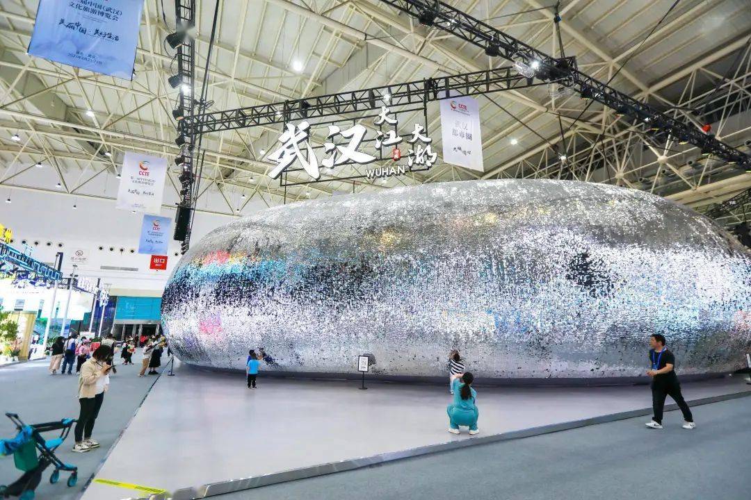 大江大湖武汉馆外观像一艘银白色的宇宙飞船,通体晶晶亮,微风袭来,整个展馆都在发光。