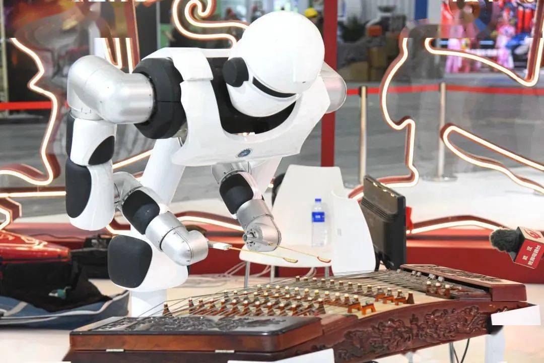 步入极目楚天·湖北馆展馆,智能机器人敲着民族乐器扬琴,与激光琴共同奏响的“高山流水”悦耳动听,欢迎八方山水知音相会湖北。同台斗艺的,是真人演奏的激光琴和大提琴。