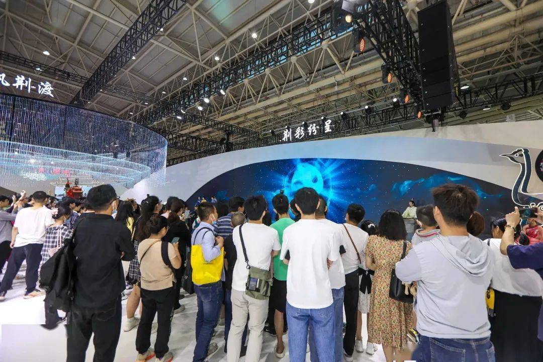 来自武汉设计工程学院的大三学生谢莹和20余位同学一同来探馆,作为文化产业管理专业的学生,他们探访过多个文化展会,依然感叹“文博会炫酷、好玩,能学到知识。”