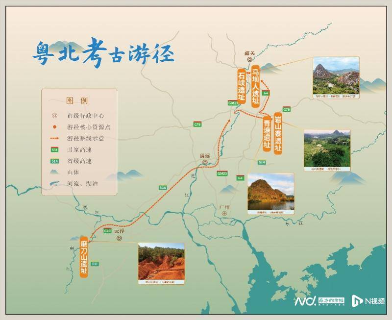 粤北考古游径:云浮郁南磨刀山遗址——清远英德青塘遗址——清远英德岩山寨遗址——韶关石峡遗址——韶关马坝人遗址