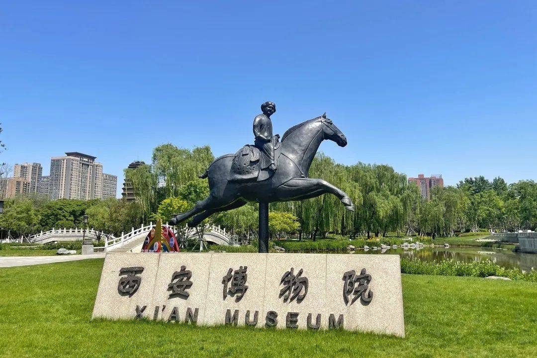 西安博物院绿树成荫,景色宜人。