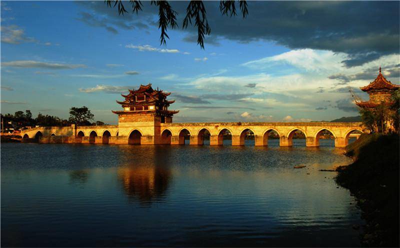 尽情欣赏十七道金光通过桥孔撒向湖面的壮观景象