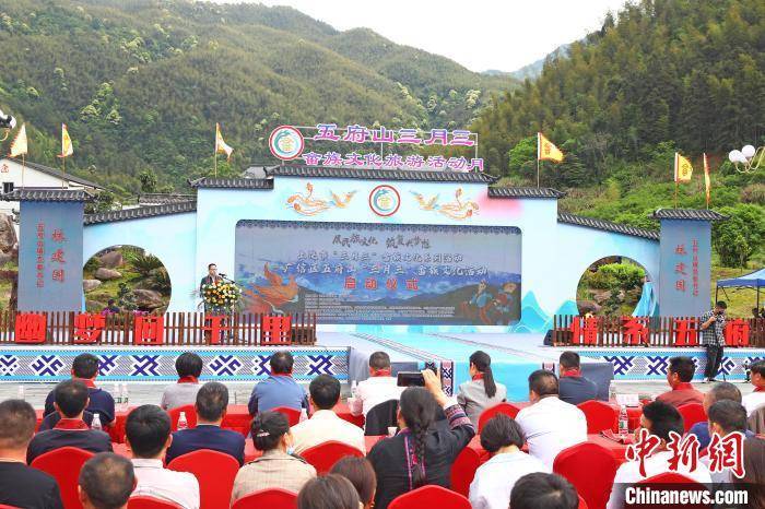 中新网江西上饶4月22日电 (记者 刘占昆)4月22日,农历三月初三,江西省上饶市“三月三”畲族文化系列活动——五府山“三月三”畲族文化旅游活动月在江西省上饶市广信区五府山镇船坑畲寨启动。