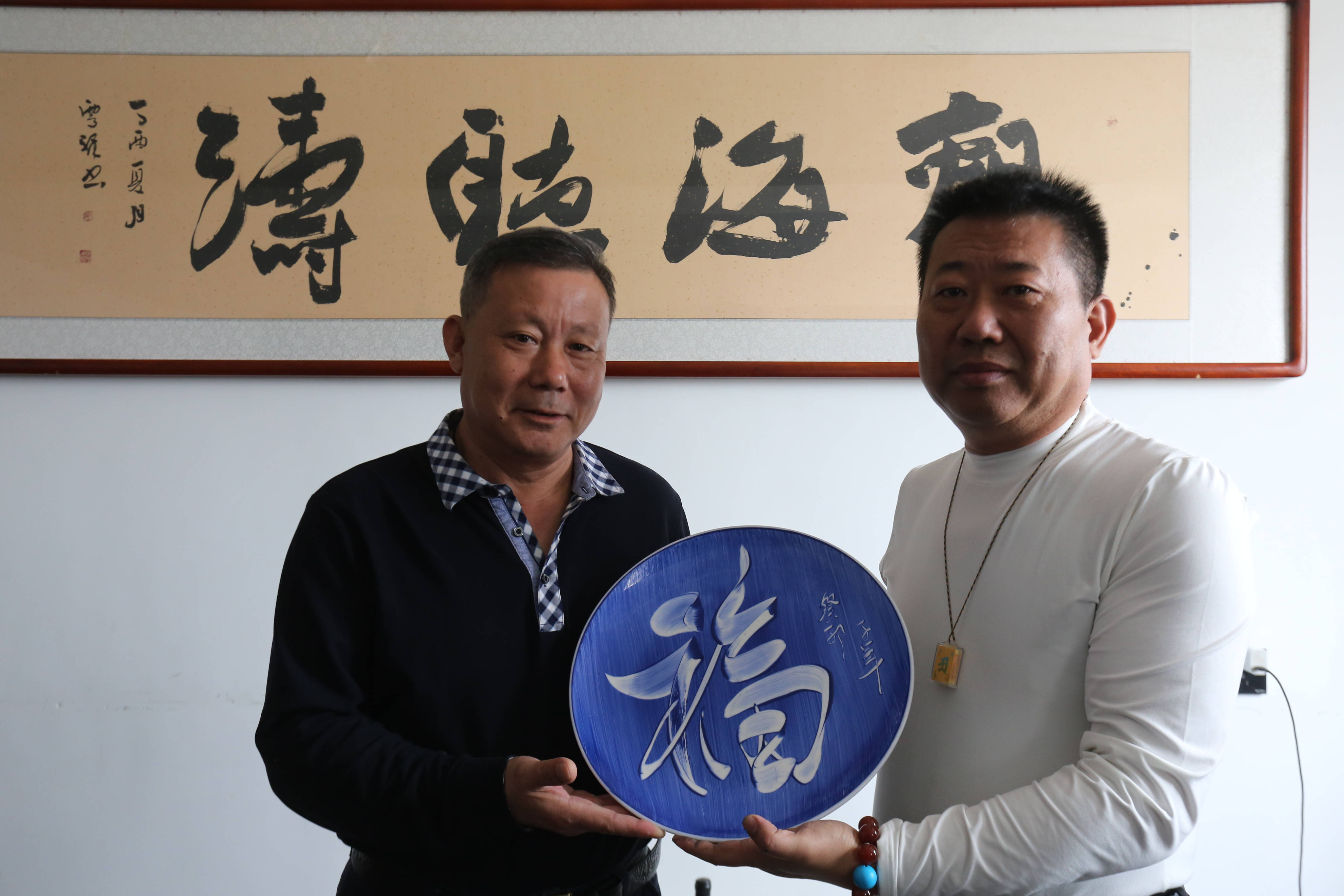 饱览了海滨风光,大家在依依不舍中,离开海岸线,与罗一顾问的老友秦皇岛市的郑泉、邹福喜两位先生汇合,品尝由郑泉先生指导、创制的独门海鲜宴,感受祖国的美食文化与兄弟情谊;非遗传承人刘子军再施绝技在盘子上创作了书画作品送给新朋,独有的艺术受到郑、邹两位先生的夸赞,书画家们同样赠送了墨宝以增进友谊,送上美好祝福。