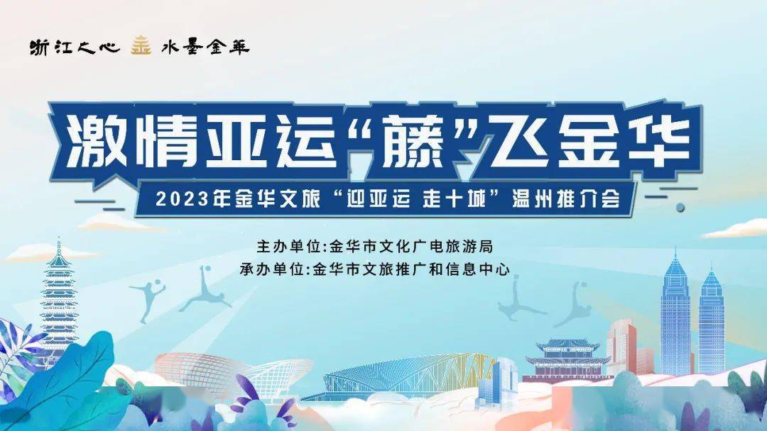 4月21日晚,为进一步打响“浙江之心 水墨金华”的知名度与美誉度,夯实做强金华文旅品牌优势,金华文旅携山水风光、文旅特色等,走进温州,开展“激情亚运 ‘藤’飞金华”2023年金华文旅“迎亚运 走十城”推介会,盛邀当地人民到八婺大地游览。