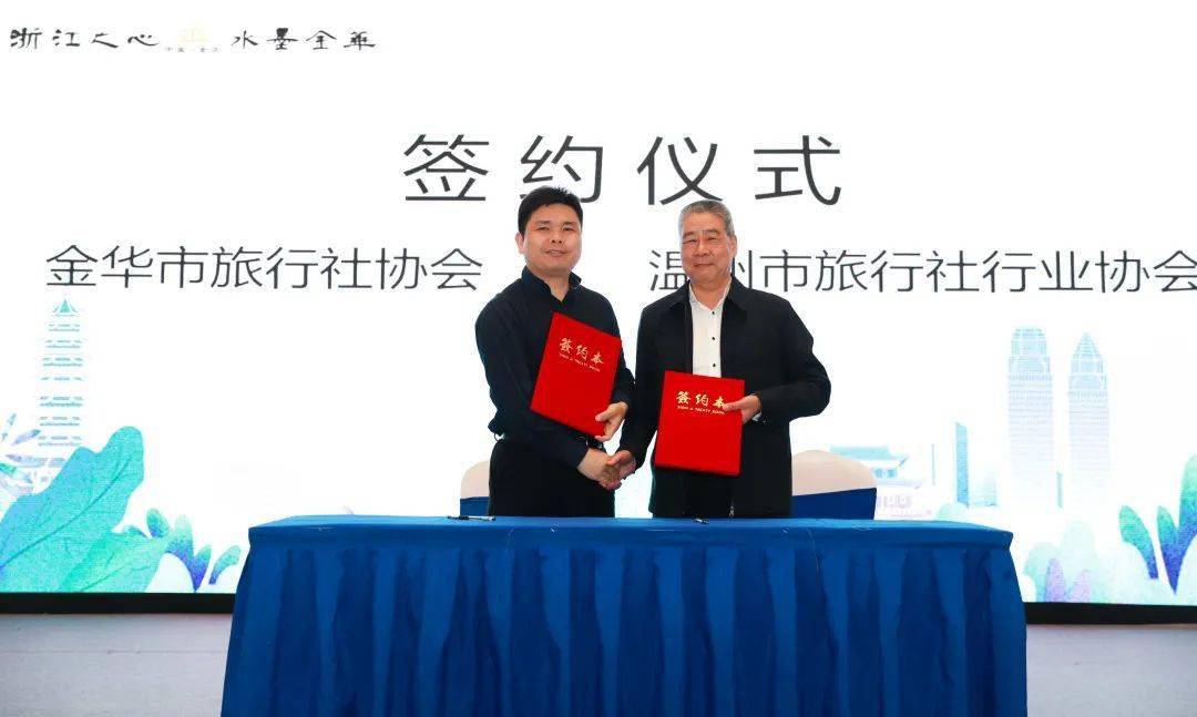 现场,金华市旅行社协会与温州市旅行社行业协会、浙江康泰国际旅行社有限公司与浙江精诚国际旅游有限公司,两地旅行社协会以及旅行社代表签订了战略合作协议,约定在城市宣传、旅游资源规划开发等方面增进合作探索,共谋旅游发展。