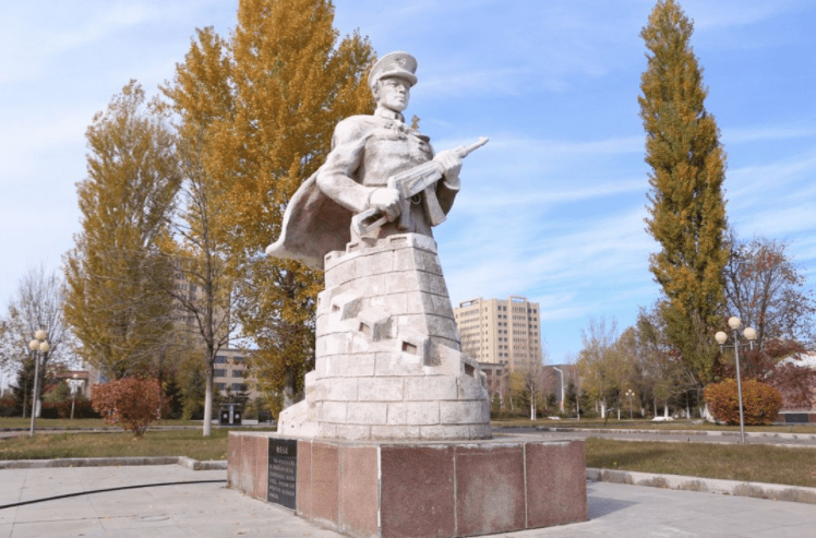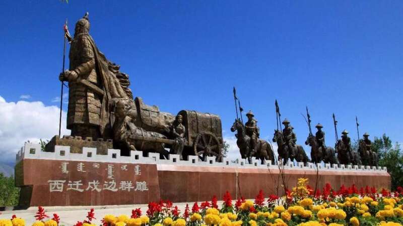 为了纪念两批察哈尔蒙古兵丁背负战箭,腰挎战刀,携带妻儿,告别家乡,越过蒙古高原,经过乌里雅苏台、巴里坤等地,一路上风餐露宿,经历严寒酷暑,长途跋涉在茫茫的戈壁滩,艰难地来到祖国西北部,保卫祖国的西北大门。从飒爽青年到白发苍苍,一直矗立在那儿。