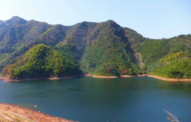 一湖碧水,绿得透底,群山迭翠,侄映水中,随着水面的涟漪颤颤悠悠,袅袅依依,山水交融,美丽极了。荡舟湖上,齐云山上的茶园飘来阵阵茶香。驾舟转过一座山麓,驶进一湾湖岔,千亩竹海掀起层层绿色波浪。